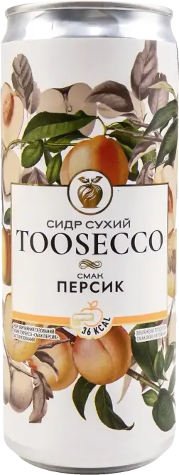 Сидр TooSecco зі смаком персику — це витончений сухий напій, що поєднує яблучну основу з ніжними, сонячними нотами стиглого персика. Створений українським виробником «Квас Бевериджиз» (частина групи «Асканія FMCG»), він натхнений італійською традицією сухих ігристих вин, але при цьому має власний, особливий характер. Його смак — гармонійний та легкий, з приємною кислинкою, що чудово освіжає.
